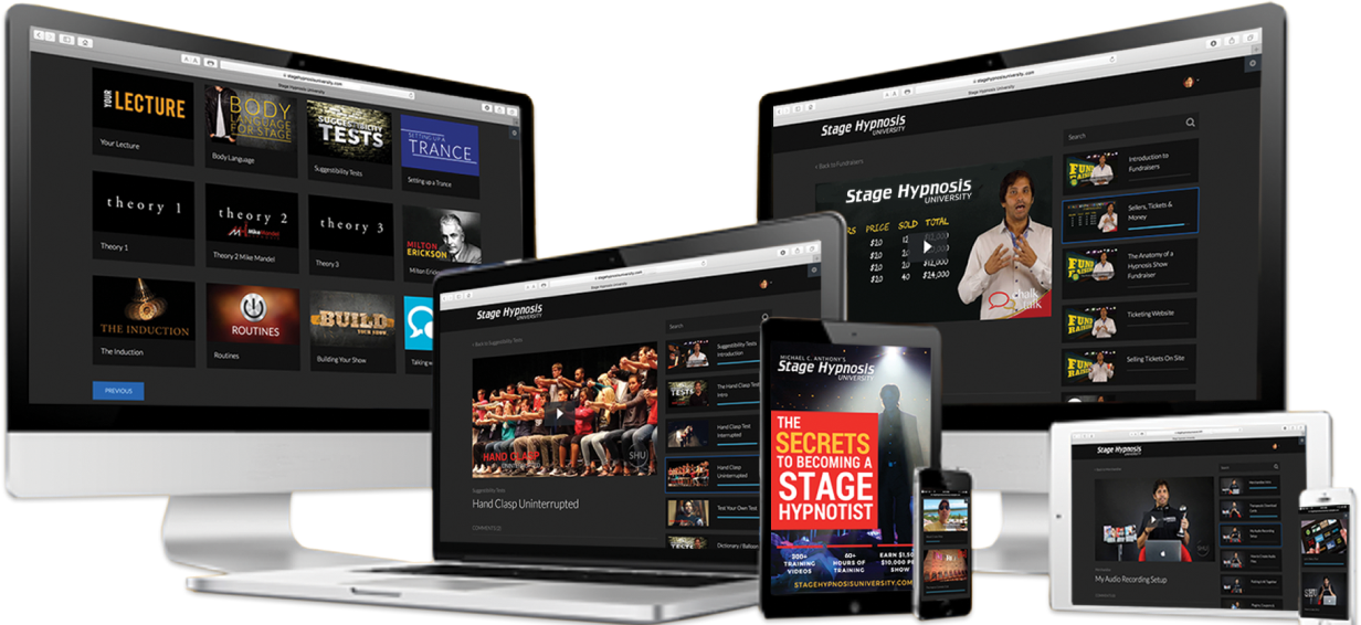 You can study it anywhere. All you need is an internet connection and a device. Stage Hypnosis University is responsive, which means it will work on your computer, your tablet or your phone. We go where you go.